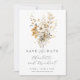 Élégante carte de save the date de mariage avec des fleurs sauvages peintes, ivoire et fleurs peintes marron brûlé pour toutes les saisons, complétée par un beau contraste entre un type de script moderne et un type serif classique. Élégance boho moderne. Fleurs sauvages simples au dos.