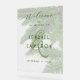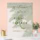 Mariage de frondes Palm bienvenue acrylique signe opaque. Un thème tropical, panneau de mariage personnalisé pour mettre sur un chevalet ou un autre stand. Texte vert sur un palmier transparent dans l'arrière - plan. Les noms sont en majuscules avec un grand signe "et" en vert clair. Cette conception ne convient pas à un panneau de plus grande taille, mais se transfère à l'une des plus petites tailles.