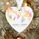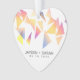 Célébrez votre journée spéciale avec cet ornement mariage commémoratif, qui présente des confettis triangulaires multicolores posés sur un arrière - plan blanc. Ajoutez les noms des jeunes mariés et la date du mariage. Reverse affiche un design identique. Utiliser tel quel, ou remplacer par une photo du couple. Ce design est optimisé pour les formes cercle, ovale, coeur et chemise. Design © W.H. Sim. Voir plus sur zazzle.com/expressionsoccasions