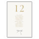 Cette jolie carte blanche à l'extérieur comporte un joli ruban blanc d'aquarelle et une police en faux or. Le design comprend 10 personnes par table, mais le design peut accueillir jusqu'à 12 personnes maximum. La conception est répétée à l'arrière pour une visibilité facile de tous les côtés de la table. Ajoutez chaque panneau avec un numéro de siège individuel au panier.