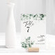 Ce design moderne de carte de numéro de table mariage blanc verdoyant propose un mélange facile et des styles coordonnés en noir et blanc avec des éléments de verdure délicats ajoutant une floraison gracieuse autour d'une simple typographie sophistiquée et un joli script de calligraphie minimale. L'eucalyptus à l'aquarelle et d'autres feuilles botaniques s'arment magnifiquement tout le long, avec un teint émeraude foncé qui s'estompe dans un effet sombre pour un vert menthe clair - pour ajouter juste assez d'une touche classe de nature rustique à un décor contemporain neutre. Cette magnifique collection créerait un air d'élégance poli pour votre mariage de rêve formel ou décontracté ou autre événement spécial. Comme pour tous nos designs, si vous avez des questions ou des demandes spéciales, contactez-nous.