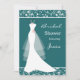 mariage blanc sur un arrière - plan turquoise bordé d'un motif vert damassé Invitation à la douche nuptiale. Cette invitation est également disponible en d'autres couleurs.