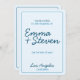 Vous recherchez une faire-part de mariage parfaite alliant style moderne et élégance ? Notre Invitation moderne bleue est exactement ce dont vous avez besoin pour donner le ton pour votre journée spéciale. Avec son design contemporain et sa palette de couleurs vibrantes, cette invitation vous impressionnera et laissera une impression durable. Avec une disposition épurée avec des lignes épurées et une typographie élégante, notre faire-part de mariage est sophistiquée. La combinaison de bleu doux et de bleu foncé crée un contraste saisissant qui ajoute une touche moderne aux invitations de mariage traditionnelles. Que vous planifiez un mariage de ville chic ou une fête en plein air branchée, cette invitation est suffisamment polyvalente pour convenir à n'importe quel thème mariage. Non seulement notre blue Modern Invitation a l'air stupéfiant, mais il est également conçu avec l'aspect pratique à l'esprit. La carte de haute qualité assure la durabilité, tandis que les détails personnalisables vous permettent de personnaliser l'invitation à correspondre à votre style mariage et d'inclure toutes les informations nécessaires. Faites une déclaration avec notre bleu Modern Invitation et préparez le terrain pour une expérience mariage inoubliable. Vos invités seront ravis de recevoir une invitation aussi élégante et contemporaine qui reflète votre histoire d'amour unique. Commandez le vôtre aujourd'hui et laissez commencer l'excitation pour votre grand jour !