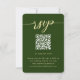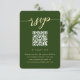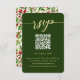 Cette carte de réponse mariage rustique dispose d'un emplacement pour votre code QR afin que les invités puissent facilement s'afficher sur votre site mariage. L'avant dispose d'une disposition simple et propre avec typographie script tendance et un arrière - plan vert. Le dos est une belle baie botanique et des imprimés de vacances verdoyants, parfait pour un mariage de Noël ou d'hiver.