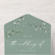 Budget belle élégante simple sauge verte invitation de mariage, détails carte et r.s.v.p tout en une carte.