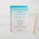Bordure du mariage de mer, programme de cérémonie de plage avec libellé personnalisé sur un côté. Créé pour un simple événement côtier, ce papier offre trois tailles et le choix de papier mat, satiné, feutre ou autre. L'image de l'Arrière - plan est sable et surf avec de l'eau bleue en haut de la page. La police de script élégante est bleu foncé. Reverse contient également une image de plage avec une eau plus claire bleu mer et sable de plage lisse.