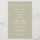 Un simple programme de cérémonie Mariage feuille de papier modèle. avec, élégant, minimaliste, simple, script de calligraphie avec typographie de bienvenue, dans un vert sauge botanique, et un style classique.