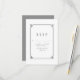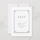 Carte RSVP simple et minimaliste Déco Chic Wedding avec une bordure ornementale moderne d'art gris. Cette carte de réponse classique et élégante est facile à customiser avec vos détails mariages. Pour plus d'options de personnalisation, cliquez sur Personnaliser.