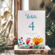 Guidez vos invités dans le style avec notre carte de numéro de table mariage fleur sauvage aquarelle élégante. Dotée d'un design lumineux et coloré, d'images florales jaunes, vertes, bleues et rouges, cette carte ajoute une touche joyeuse et sophistiquée à vos tables de réception. Parfait pour compléter n'importe quel thème mariage dynamique, cette carte de numéro de table allie la fonctionnalité et la beauté artistique, ce qui en fait un détail exceptionnel pour votre journée spéciale. Assurez-vous que vos invités se sentent bien accueillis et que votre décoration est impeccable avec ce charmant ajout à votre célébration mariage.