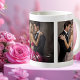 Mug mariage avec vos photos personnalisées sur un simple arrière - plan (vous pouvez choisir votre couleur préférée dans l'éditeur avancé). Le texte "love" est un style de script, que vous pouvez customiser. Un joli cadeau pour les jeunes mariés ou maman de la mariée ou mariée, ainsi que pour célébrer un anniversaire.