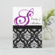 Invitation mariage damassé avec Monogramme violet. Design de disposition par Elke Clarke©2009. Graphiques sous licence pour use.com et WhiteWhimsicalWeddings.blogspot.com. Customisez avec vos noms monogrammes et couleurs mariages. Ajoutez toutes vos informations de mariage au verso de la carte en utilisant les invites de menu faciles à utiliser de Zazzle.