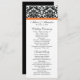 Elégant damas noir avec un programme de mariage avec accent rose corail. Customisez avec vos informations de mariage et vous êtes tous prêts à partir ! Les invitations mariage damassé, les cartes RSVP, les cartes de direction et plus encore sont disponibles dans notre boutique à l'adresse www.celebrateitweddings.com