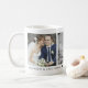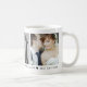 Tasse à café imprimée personnalisée personnalisée avec vos photos de mariage personnalisées et texte. Ajoutez 3 photos spéciales et personnalisez-le avec vos noms et date mariage ou tout autre texte personnalisé. Cliquez sur customiser pour modifier les polices de texte et les couleurs, déplacer les choses ou ajouter des photos pour créer vos propres mugs photo mariage de conservation uniques.
