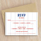 Carte RSVP Boîtier rouge blanc et bleu baseball / softball mariage avec des rayures. Personnalisez-le avec les détails de votre événement. Idéal pour les amateurs de sport.