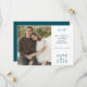 Faites une première impression durable avec cette élégante photo turquoise enregistrer la carte de date. Doté d'un monogramme propre, d'une photo de couple romantique et d'un code QR scannable pour un accès facile aux détails de votre mariage, ce design moderne allie beauté et commodité. Customisez avec vos nom, date et site Web pour tenir les invités informés et excités pour le grand jour.