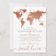 Une invitation unique de carte du monde en tons de cuivre et de rouille brun sépia avec un emplacement de cœur éditable et un texte de destination en bas, parfait pour un mariage à l'étranger ou une réception à domicile. —Cliquez sur PERSONNALISER PLUS pour effectuer toutes les modifications de conception, y compris le déplacement du cœur ou l'ajustement de l'espacement des informations de voyage au dos. — Tout le texte au dos peut être supprimé si vous n'avez pas besoin d'envoyer des détails de voyage détaillés aux invités.