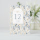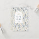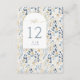Cette élégante suite de mariage présente des motifs floraux et feuillages délicats dans un décor bleu et or poussiéreux pour un thème mariage cohésif et époustouflant. La carte de numéro de table de coordination présentée ici présente un motif floral doux et un cadre voûté tendance, ajoutant une touche de romantisme et de sophistication à l'ensemble. Parfait pour les couples à la recherche d'un design intemporel et magnifique pour leur journée spéciale. Ajoutez vos initiales, la date du mariage et le numéro de table à l'aide du modèle fourni. Recherchez ID1045 pour voir d'autres produits dans cet ensemble de conceptions mariages.