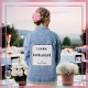 Une veste en denim bleu pour une demoiselle d'honneur, avec un panneau mignon sur le dos. Le panneau est modelé avec des pois lilas pâles, et peut être personnalisé pour le jour de mariage. Le nom de la demoiselle d'honneur est en haut en lettres capitales élégantes. Le mot 'Bridesmaid' est au centre du panneau, et plus bas sont les initiales du couple heureux et leur date et lieu mariages. Un ajout élégant et attrayant à cette occasion spéciale.