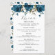 Menu du dîner mariage romantique avec aquarelle illustration de fleurs de pivoines bleu marine avec verdure.