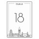 Une carte unique de numéro de table mariage pour un mariage qui se déroule dans la belle ville de Londres. Il dispose d'un numéro de table simplifié reposant au-dessus d'une version stylisée de l'horizon unique de la célèbre ville.