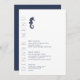 Cette élégante suite de mariage présente un style nautique classique et un style épuré et minimaliste. Des vagues stylistiques dans les teintes de l'aqua au bleu marine et une belle illustration d'hippocampe apportent des accents uniques. Une disposition asymétrique, avec le texte optionnel "Dinner Menu" qui prévaut dans le format vertical, donne à ce faire-part de mariage une touche moderne saisissante. Idéal pour les mariages de club nautique, de bateau, de plage ou d'été. Recherchez ID836 pour voir cette suite complète et d'autres avec des accents d'éléments marins alternatifs.