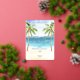 Mariage Tropical Beach Invitation feuille or avec mer et palmiers avec lumières