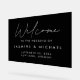 Bienvenue à vos invités mariages avec ce simple et élégant panneau acrylique d'accueil de mariage ! Le panneau d'accueil horizontal mariage comporte un script blanc manuscrit avec un arrière - plan acrylique noir. Personnalisez le panneau d'accueil mariage noir et blanc avec vos noms, date du mariage et ville/état. Le panneau acrylique mariage de bienvenue est idéal pour votre mariage contemporain.