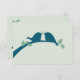 Carte verte pâle avec inséparables bleu marine.
