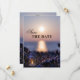 Un mariage d'hiver romantique Sauvez la carte Date avec un coucher de soleil à l'océan avec une lanterne festive avec des lumières scintillantes de fée.