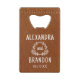 Notre Mariage en cuir Brown personnalisé Bottle Opener présente un charmant mélange d'utilité et d'élégance. Réalisée avec soin et amour par Mylini Design, cette faveur de mariage apporte une touche de finition fantastique à l'esthétique de votre célébration. Le design de la taille de la carte de crédit s'adapte confortablement à votre porte-monnaie, il est donc toujours là quand vous en avez besoin. Emulant une texture en cuir riche, l'imprimé brun apporte une touche sophistiquée à la base en acier inoxydable robuste et durable. La fonction personnalisée vous permet d'ajouter un élément significatif à cette conservation, ce qui en fait un élément au trésor. Qu’il s’agisse d’une date, d’un nom ou d’un message spécial, nous donnerons vie à votre vision avec précision et soin. Vous n'êtes pas sûr de personnaliser ou de devoir faire correspondre d'autres éléments ? N'hésitez pas à me contacter, et ensemble nous pouvons nous assurer que cette faveur charmant s'aligne parfaitement avec votre occasion. Alors pourquoi attendre ? Express votre amour unique et rendre votre célébration inoubliable. Achetez maintenant pour découvrir le mélange exquis de praticité et de style.