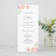 Laissez vos invités sentir l'élégance simple et la joie de votre jour de mariage avec ce magnifique design moderne avec des bouquets d'aquarelle rose vif et corail floral aux accents d'or. Les titres "Mariage de", "Ceremony", "Wedding Party" et "Merci" sont écrits dans un élégant script gris foncé. Vous pouvez personnaliser le salutation de bienvenue, vos noms, la date du mariage et les cérémonies sur le devant et la fête de mariage et le message de remerciement personnel sur le dos, le tout dans une simple élégante typographie de coordination. Parfait pour les mariages d'été, d'extérieur et de jardin. Ce programme est conçu pour coordonner avec notre collection de Mariages d'aquarelle rose, corail et or Floral.