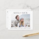 Préparez la scène pour votre faire-part de mariage avec cette carte postale Save the Date élégante et chic. Votre photo prend le devant de la scène et est encadrée de typographie élégante. Enregistrer la date est écrit dans une combinaison de texte droit et italique. Votre nom, votre date de mariage et votre emplacement sont dans une police d'accompagnement. Le verso de la carte postale contient vos noms complets, votre date de mariage, votre emplacement et le site Web du mariage. Pour votre commodité, votre adresse de retour est incluse. Facile à personnaliser le modèle.