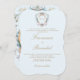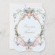Une luxueuse faire-part de mariage sur le thème de l'époque de régence vintage. Avec d'élégantes crêtes encadrées autour de vos initiales bleu doux avec des teintes de bleu violet et rose dans une teinte pastel reflétant les temps de régence. Conception de mariage personnalisée vintage et élégante.