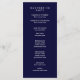 Ce programme de mariage moderne présente un texte rose pâle sur un arrière - plan bleu marine.