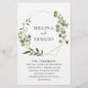 Complétez votre mariage classique avec ce programme de mariage feuille géométrique et vert eucalyptus. L'aménagement comprend un cadre géométrique doré ornant des feuilles d'eucalyptus verts.