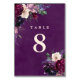 Fleurs romantiques dans les tons riches bordeaux, lilas doux, violet d'aubergine profonde et une paire d'orchidées rosâtre avec des plantes vertes modernes comme les fougères et l'eucalyptus. Un arrière - plan d'aquarelle violet d'aubergine profonde, tout cela avec une typographie élégante dans ces cartes de numéro de table mariage romantique. Achetez une carte pour chaque numéro !