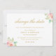 Carte de faire-part sur mesure pour remise/changement de dates mariage avec un design floral rose aquarelle élégant.