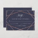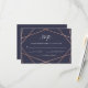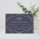 Cette simple carte RSVP de mariage élégante présente un diamant d'or faux rose sur un arrière - plan bleu foncé, et une typographie moderne en blanc.