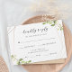 Cartes de réponse RSVP de mariage personnalisées, avec des cadres d'or géométrique et un design verdoyant et moderne.