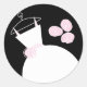 Joli autocollant pastel à thème de mariée avec une robe mariage stylisée et des fleurs dans les tons rose, noir et blanc. Un design personnalisable pour personnaliser avec votre propre texte, photos et idées.