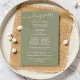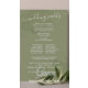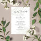 Un simple modèle de feuille de papier du programme de cérémonie de Mariage. Ce programme botanique élégant vert, minimaliste avec script de calligraphie simple est parfait pour tout mariage de plage, avec des feuilles élégants de palmiers,