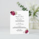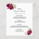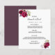 Une élégante carte de menu mariage de style bohème. Roses verdoyants, roses et bordeaux. Modèles pour vos noms, date et le menu mariage. Arrière - plan blanc à l'avant, cassis, violet profond à l'arrière. Lettres de couleur noire.