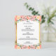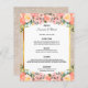 Une élégante carte de menu mariage de style bohème. Roses roses et verdoyants dans le décor. Modèles pour vos noms, date et le menu mariage. Un cadre en faux or et un burlap rustique comme arrière - plan. Lettres de couleur noire. Retour : burlap beige rustique en tant qu'arrière - plan.