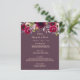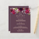 Une élégante carte de menu mariage de style bohème. Roses verdoyants, roses et bordeaux. Modèles pour vos noms, date et le menu mariage. Cassis arrière - plan à l'avant, cassis, violet profond à l'arrière. Lettres de couleur dorée.