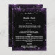 Un menu mariage élégant et glamour. Un arrière - plan noir, décoré de faux parties scintillant violet, brille. Texte blanc. Personnalisez et ajoutez votre nom, vos dates et le menu. Vous pouvez ajouter du texte, des photos à l'arrière. 1 feuille = 1 menu imprimé bord à bord.