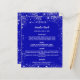 Un menu mariage classique. Un arrière - plan bleu royal. Texte blanc. Décoré de parties scintillant en faux argent, pétillant. Personnalisez et ajoutez votre nom, votre date et le menu. Vous pouvez ajouter du texte, des photos à l'arrière. 1 feuille = 1 menu imprimé bord à bord.