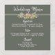 Menu mariage Carte Rose Aquarelle conçue avec du rose et du vert doux, pour votre réception de mariage. Le texte comprend : le menu Mariage, les prénoms de la mariée et de la mariée, et la date du Mariage sur un arrière - plan blanc avec bordure florale. Le texte inverse comprend : Votre Menu Selections - Appetizer, Entre et Dessert, sur un arrière - plan vert jardin, accentué de rose et de vert doux floral. Pour personnaliser, insérez simplement les détails du menu Mariage dans notre modèle facile, en remplaçant l'exemple de texte.