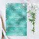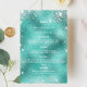 Une carte élégante et séduisante pour les mariages. Personnalisez et ajoutez vos noms, votre date et le menu mariage. Turquoise, vert mer faux métallique à l'arrière - plan, décoré avec de la poussière de parties scintillant faux. Des numéros de table correspondants sont disponibles dans notre magasin!