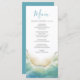Ces menus de mariage sur la plage sont composés d'un littoral couleur aquarelle dans des tons bleu turquoise. Utilisez les champs modèles pour ajouter vos choix de dîner. Un charmant choix côtier pour les mariages de destination balnéaire, un dîner de répétition, une réception ou une fête de fiançailles.