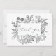 Un mariage botanique fleuri et dessiné à la main et luxuriant vous remercie. Vous pouvez utiliser le texte ou le remplacer par le vôtre, ou simplement supprimer et utiliser seulement vos noms et date mariage au verso.